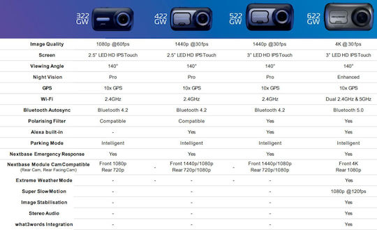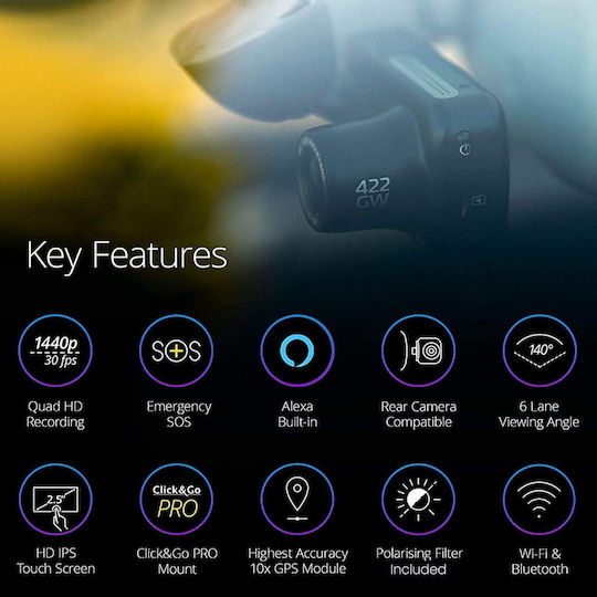 NextBase 422GW Κάμερα DVR Αυτοκινήτου 1440P με Οθόνη 2.5″ Wi-Fi, GPS NBDVR422GW