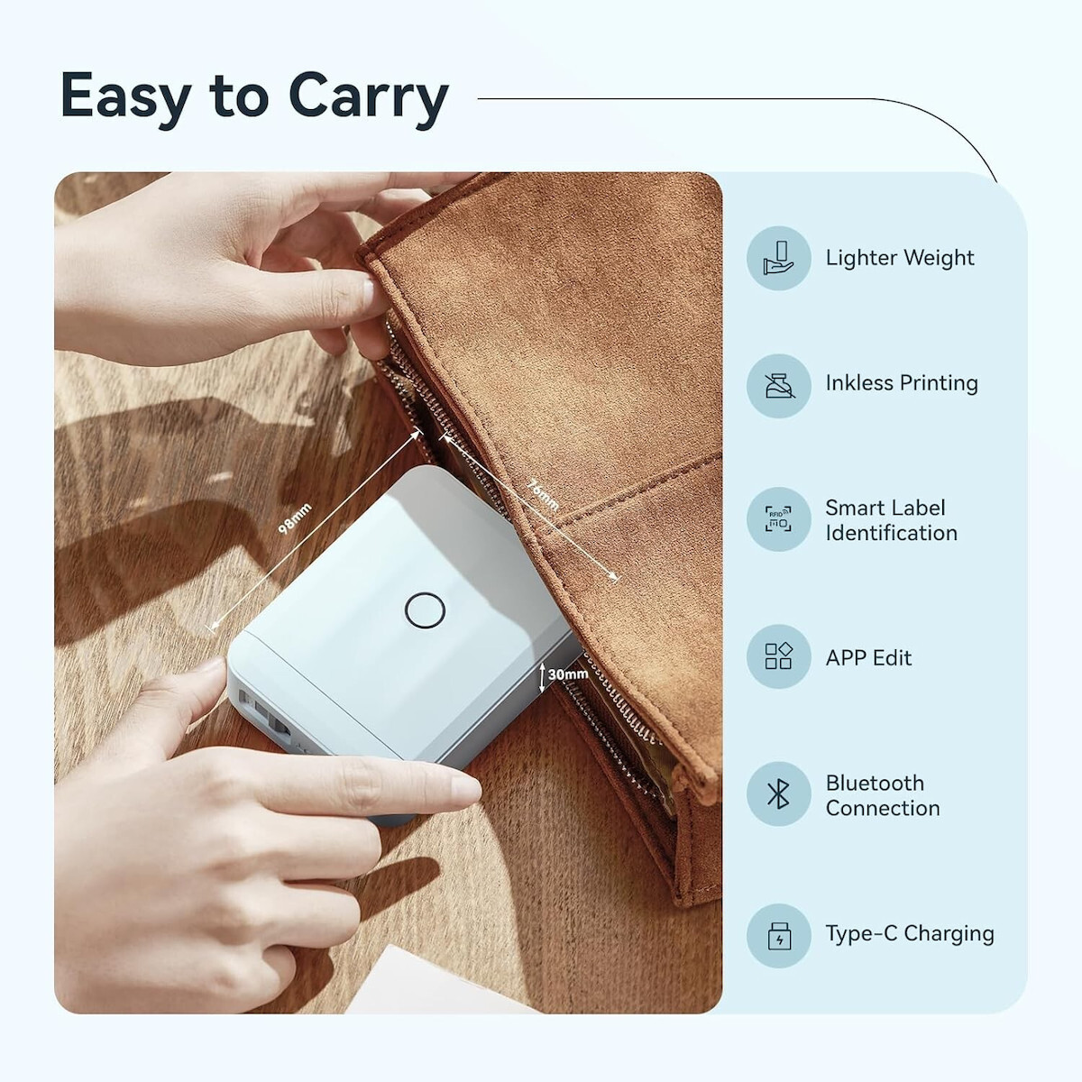Ο ετικετογράφος χειρός Niimbot σε μπλε χρώμα είναι η ιδανική λύση για την οργάνωση και την επισήμανση αντικειμένων στην καθημερινότητά σου. Με τη βοήθεια αυτού του εργαλείου, μπορείς εύκολα να εκτυπώσεις και να κολλήσεις ετικέτες σε διάφορες επιφάνειες, διευκολύνοντας τη διαχείριση του χώρου σου.