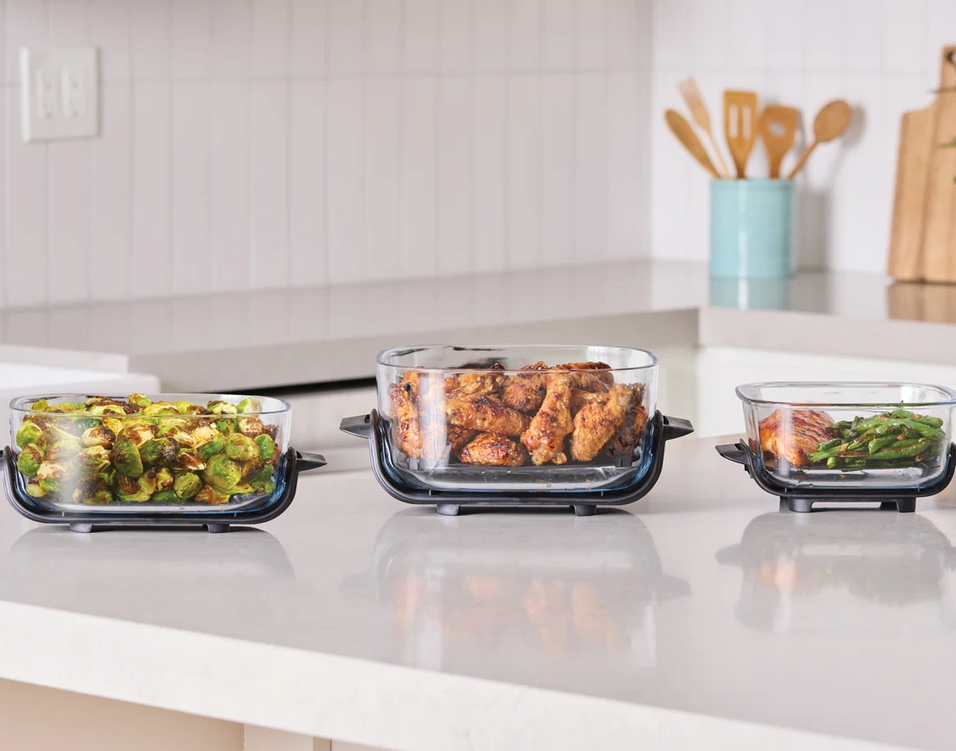 Η φριτέζα περιλαμβάνει δύο γυάλινα δοχεία CleanCrisp™, ένα 6-cup για προσωπικά γεύματα και ένα 4-qt για μεγαλύτερες μερίδες, όπως ολόκληρο κοτόπουλο με λαχανικά. Το μικρό δοχείο μπορεί να ετοιμάσει ένα γεύμα σε μόλις 7 λεπτά, ενώ το μεγάλο είναι ιδανικό για οικογενειακά δείπνα ή για να εντυπωσιάσεις τους φίλους σου σε πάρτι. Το να μαγειρεύεις τόσο μικρές όσο και μεγάλες μερίδες γίνεται πανεύκολο, χωρίς να χρειάζεται να χρησιμοποιείς διαφορετικές συσκευές.