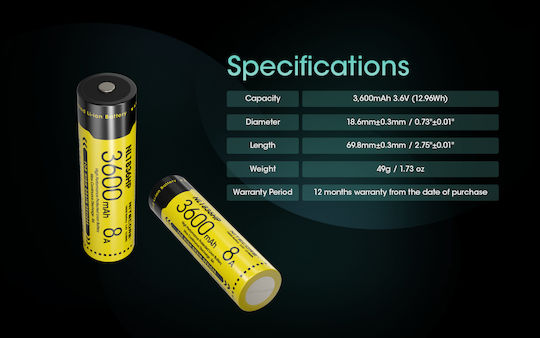 NiteCore Επαναφορτιζόμενη Μπαταρία 18650 Li-ion 3600mAh
