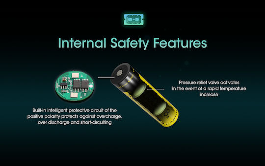 - Ενσωματωμένο κύκλωμα προστασίας που προστατεύει από υπερβολική φόρτιση, υπερβολική αποφόρτιση και βραχυκύκλωμα
