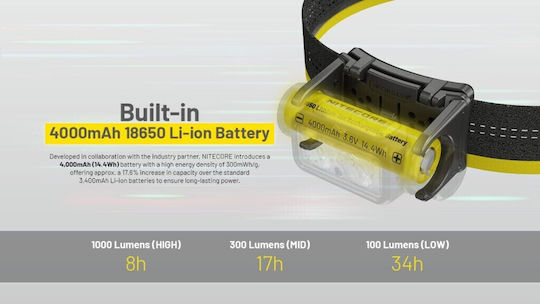 NiteCore Επαναφορτιζόμενος Φακός Κεφαλής LED IP68 με Μέγιστη Φωτεινότητα 1700lm NU45