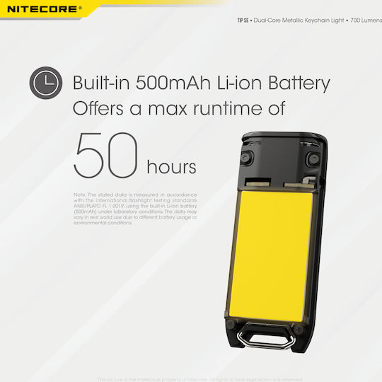 NiteCore Επαναφορτιζόμενος Φακός Μπρελόκ LED IP54 με Μέγιστη Φωτεινότητα 700lm Tip SE Black 9110101066