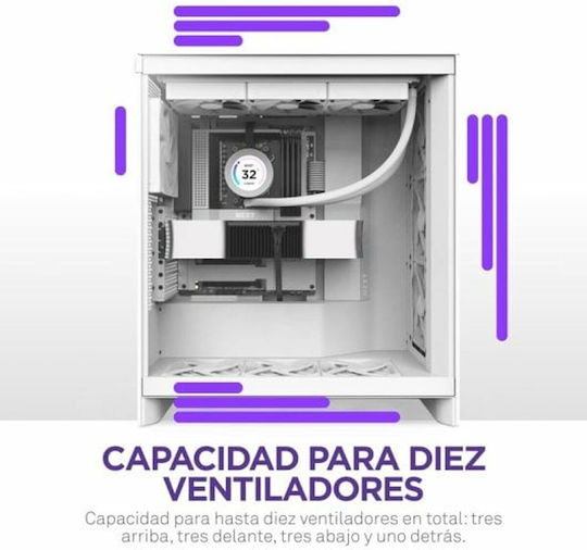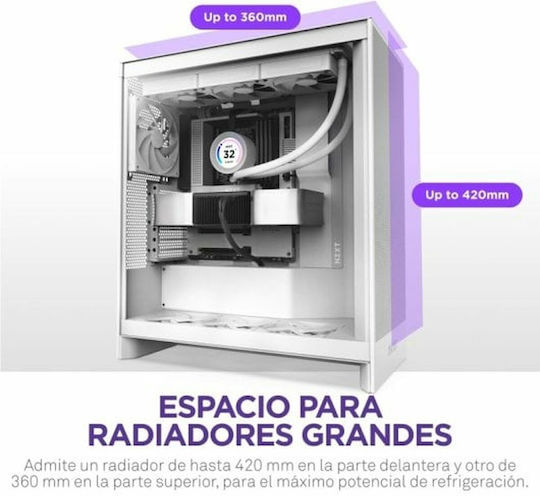 NZXT H7 Flow (2024) Gaming Midi Tower Κουτί Υπολογιστή με Πλαϊνό Παράθυρο Λευκό