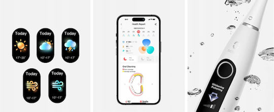 Η mobile εφαρμογή Oclean Care είναι διαθέσιμη σε Android και iOS, με δυνατότητα παρακολούθησης της προόδου του βουρτσίσματος και προσαρμογής ρυθμίσεων. Το σετ κυκλοφορεί σε δύο χρώματα: μωβ και πράσινο, προσθέτοντας κομψότητα στην διακόσμηση του μπάνιου.