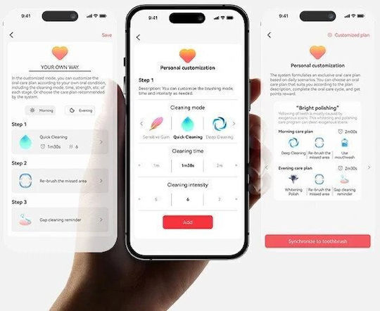 Το σετ περιλαμβάνει δύο interchangeable κεφαλές βούρτσας, ιδανικές για ζευγάρια ή οικογένειες, καθώς και διάφορους τρόπους όπως καθαρισμού, μασάζ ή λεύκανσης, που επιτρέπουν την εξατομικευμένη φροντίδα.