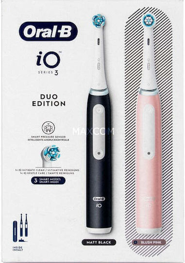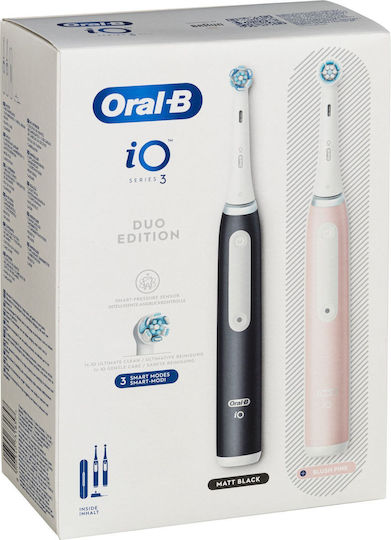 Oral-B iO Series 3 Ηλεκτρική Οδοντόβουρτσα με Αισθητήρα Πίεσης και Θήκη Ταξιδίου Matt Black / Blush Pink