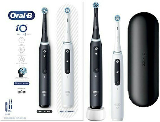 Oral-B IO Series 5 Ηλεκτρική Οδοντόβουρτσα με Αισθητήρα Πίεσης και Θήκη Ταξιδίου Black & White Διπλή Συσκευασία