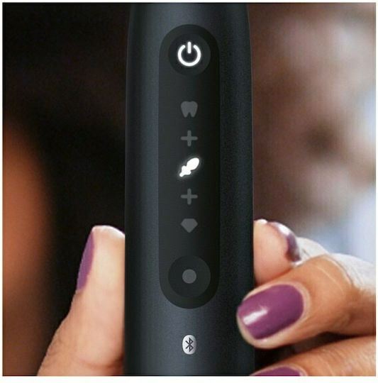 Υποστηρίζει σύνδεση με την εφαρμογή Oral-B iO μέσω Bluetooth, για να παρακολουθείς τις συνήθειες βουρτσίσματός σου. Η τεχνητή νοημοσύνη αναγνωρίζει το στυλ βουρτσίσματός σου και σε καθοδηγεί μέσω της εφαρμογής, ώστε να βουρτσίζεις τα δόντια σου καλύτερα μέρα με τη μέρα.