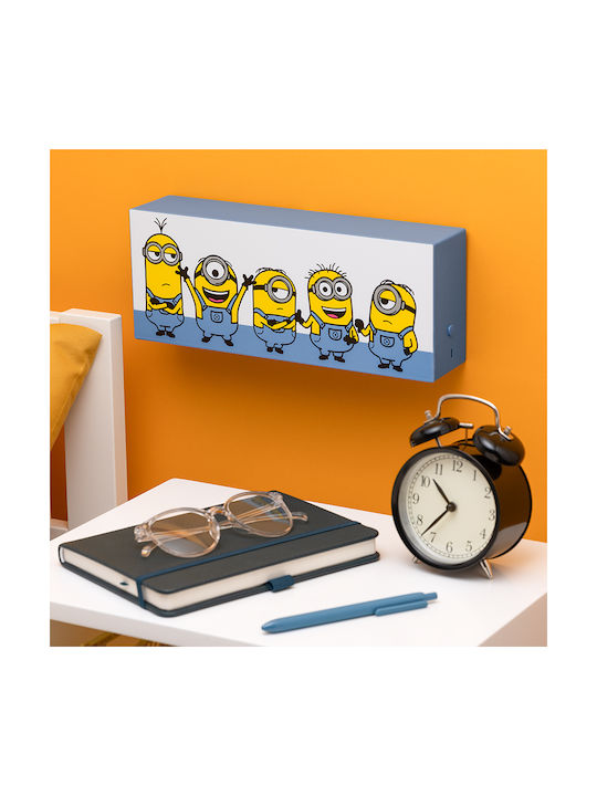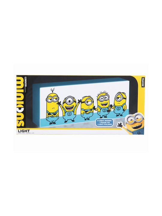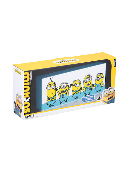 Το φωτιστικό 30cm παρουσιάζει τους αγαπημένους σας χαρακτήρες – από τον Kevin και τον Stuart μέχρι τον Bob και άλλους. Μπορεί να τοποθετηθεί στον τοίχο (περιλαμβάνονται οδηγίες) ή να χρησιμοποιηθεί ελεύθερα. Περιλαμβάνει λειτουργίες φωτισμού φάσης και παλμού για επιπλέον εφέ.