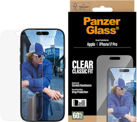 Το screen protector της PanzerGlass είναι μια μεμβράνη, ειδικά κατασκευασμένη για την προστασία της οθόνης μόνο από σκόνη και επιδερμικές γρατζουνιές. Δεν προστατεύει την οθόνη σε περίπτωση πτώσης, καθώς είναι λεπτή. Δεν επηρεάζει τη λειτουργία της οθόνης. Είναι συμβατό με το iPhone 17 / 17 Pro / 16 Pro.
