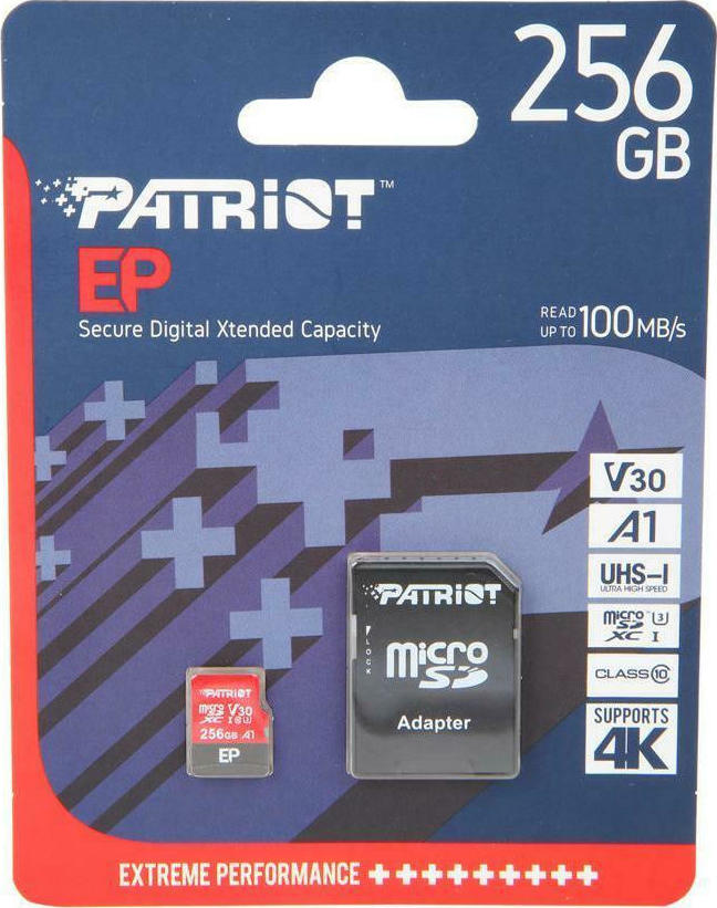 Patriot EP microSDXC 256GB Class 10 U3 V30 A1 UHS-I με αντάπτορα