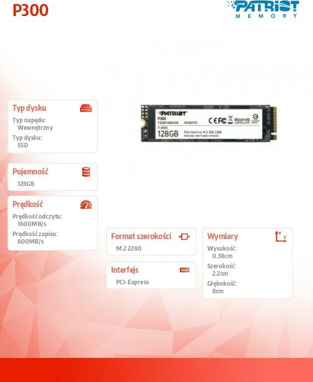Patriot P300 SSD 128GB M.2 NVMe PCI Express 3.0 P300P128GM28