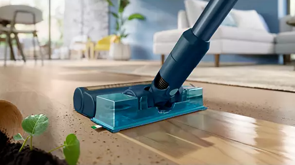 Για γρήγορο υγρό φρεσκάρισμα καθώς σκουπίζεις, απλά τοποθέτησε το Aqua εξάρτημα με πανί μικροϊνών. Έτσι απομακρύνεις λεκέδες και σκόνη με μία κίνηση.