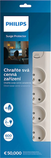 Philips Πολύπριζο Aσφαλείας 4 Θέσεων με Καλώδιο 2m Γαλλίας (Type E) SPN7040WA/60