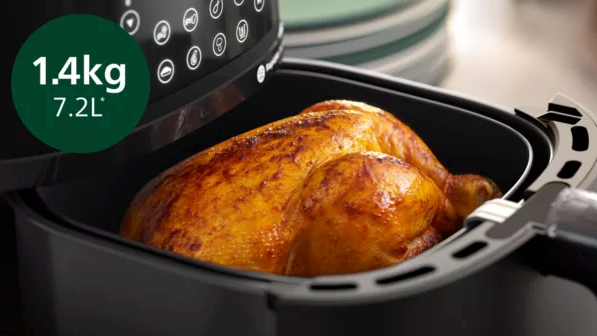 Έχεις μεγάλη οικογένεια ή απλώς τρως σαν να είσαι πέντε άτομα; Το Airfryer αυτό σε καταλαβαίνει. Με καλάθι 1,4 κιλά και κάδο 7,2 λίτρων, σου δίνει τη δυνατότητα να μαγειρεύεις για έως και 6 άτομα με μία κίνηση.