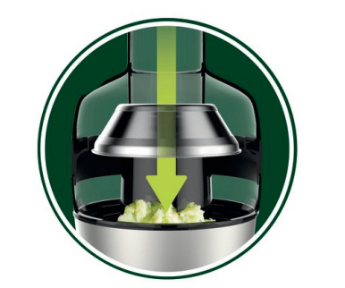 Χάρη στο στρογγυλό και λείο σχήμα, τα υπολείμματα συλλέγονται στο δοχείο πολτού.