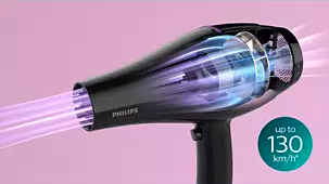 Το σεσουάρ Philips Pro διαθέτει ένα υψηλής απόδοσης μοτέρ AC ειδικά σχεδιασμένο για την επαγγελματική αγορά. Παράγει αέρα με ταχύτητα έως και 130 χλμ./ώρα, για γρήγορα και αποδοτικά αποτελέσματα.