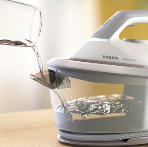 Ένα διαφανές δοχείο 1,4 λίτρων σάς παρέχει έως και 1 ώρα συνεχούς χρήσης (στη λειτουργία Eco). Δείτε καθαρά πόσο νερό απομένει και ξαναγεμίστε το εύκολα ανά πάσα στιγμή στη βρύση από το μεγάλο άνοιγμα γεμίσματος.