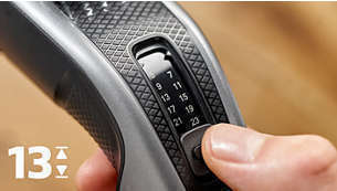Κόψτε τις τρίχες στο μήκος που θέλετε. Απλώς επιλέξτε μία από τις 12 ρυθμίσεις μήκους από 1 χιλ. έως 23 χιλ. σε διαβαθμίσεις των 2 χιλ. ή αφαιρέστε τη χτένα για τριμάρισμα στα 0,5 χιλ.