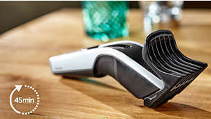 Χρησιμοποιήστε την κουρευτική μηχανή χωρίς καλώδιο για μέγιστη ισχύ και ελευθερία. Η ισχυρή μπαταρία NiMH παρέχει έως 45 λεπτά αυτονομίας μετά από φόρτιση 8 ωρών.