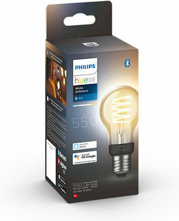 Η λάμπα LED Philips Hue είναι μια ιδανική ενεργειακά αποδοτική πηγή φωτός που προσφέρει διαφορετικές θερμοκρασίες λευκού φωτός και θυμίζει μια παραδοσιακή λάμπα λόγω του σχήματος της (A60) και της ορατής ίνας. Η λάμπα διαθέτει μεγάλο φωτιστικό (E27) και προσφέρει λευκό φως που μπορεί να ρυθμιστεί σύμφωνα με τις προτιμήσεις σας, από πολύ ζεστό λευκό (2200K) έως φωτεινό λευκό (4500K).