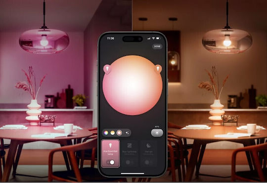 Η συνδεσιμότητα της λάμπας με Hue Bridge επιτρέπει τη διαχείριση του φωτισμού μέσω κινητού ή φωνητικού βοηθού, προσφέροντας μεγαλύτερη ευκολία και ευχρηστία στην καθημερινότητά σας.