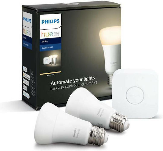 Philips Smart Λάμπες LED 9.5W για Ντουί E27 και Σχήμα A60 Θερμό Λευκό 1055lm Dimmable 2τμχ 929002469201