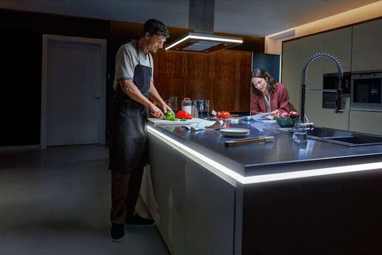 Επιλέξτε από πολύχρωμες, ευχάριστες ή φωτεινές λευκές αποχρώσεις φωτός για να δημιουργήσετε την τέλεια ατμόσφαιρα με μια διάχυτη λάμψη που απλώνεται στους τοίχους, τα δάπεδα και τις οροφές σας. Η τεχνολογία Chomasync™ εξασφαλίζει ακριβή και συνεπή ανάμειξη χρωμάτων, δημιουργώντας ομαλές μεταβάσεις σε οποιαδήποτε γωνία. Προσαρμόστε τον χώρο σας με όμορφες σκηνές φωτισμού και δυναμικά εφέ για κάθε διάθεση και περίσταση. Κόψτε τα στο μέγεθος που θέλετε για οποιονδήποτε χώρο, από γωνίες έως τοίχους και από οροφές έως σκάλες.