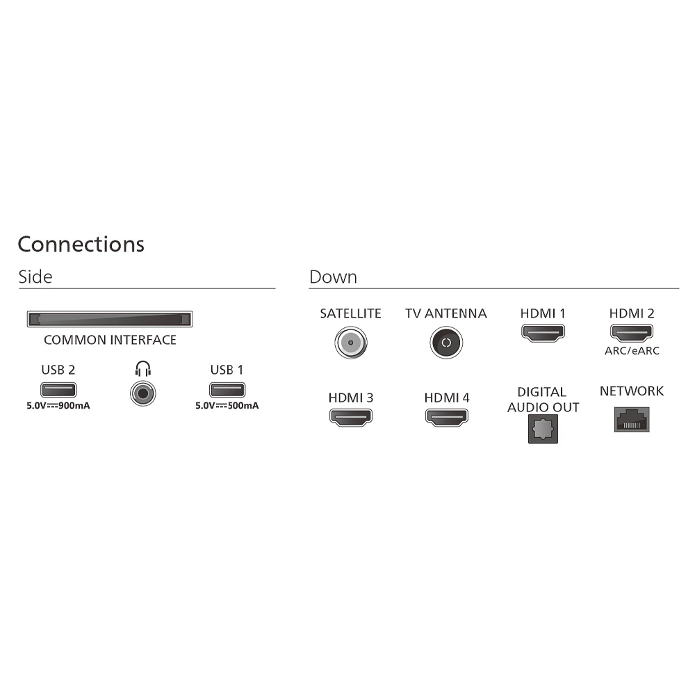 Η τηλεόραση διαθέτει επίσης 4 θύρες HDMI και 2 θύρες USB για εύκολη σύνδεση εξωτερικών συσκευών. Έχει ενσωματωμένο δέκτη DVB-S2 και DVB-T2, επιτρέποντάς σου να παρακολουθείς δωρεάν κανάλια μέσω δορυφόρου ή επίγειας μετάδοσης. Υποστηρίζει το πρότυπο VRR, εξασφαλίζοντας καλύτερη απόδοση κατά τη διάρκεια παιχνιδιών.