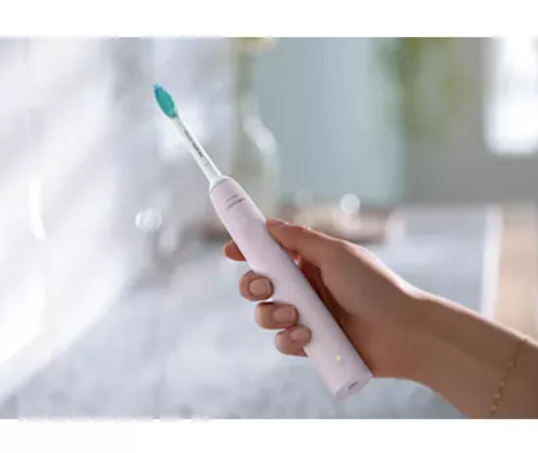Επαναφορτιζόμενη ηλεκτρική οδοντόβουρτσα Sonicare 2100 της Philips, η οποία χάρη στην τεχνολογία Sonic αφαιρεί περισσότερη πλάκα, προσφέροντας ισχυρό, αλλά ταυτόχρονα απαλό καθαρισμό.