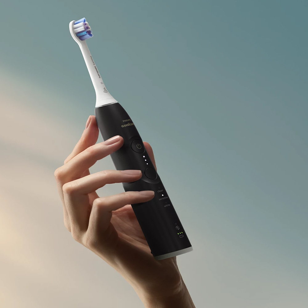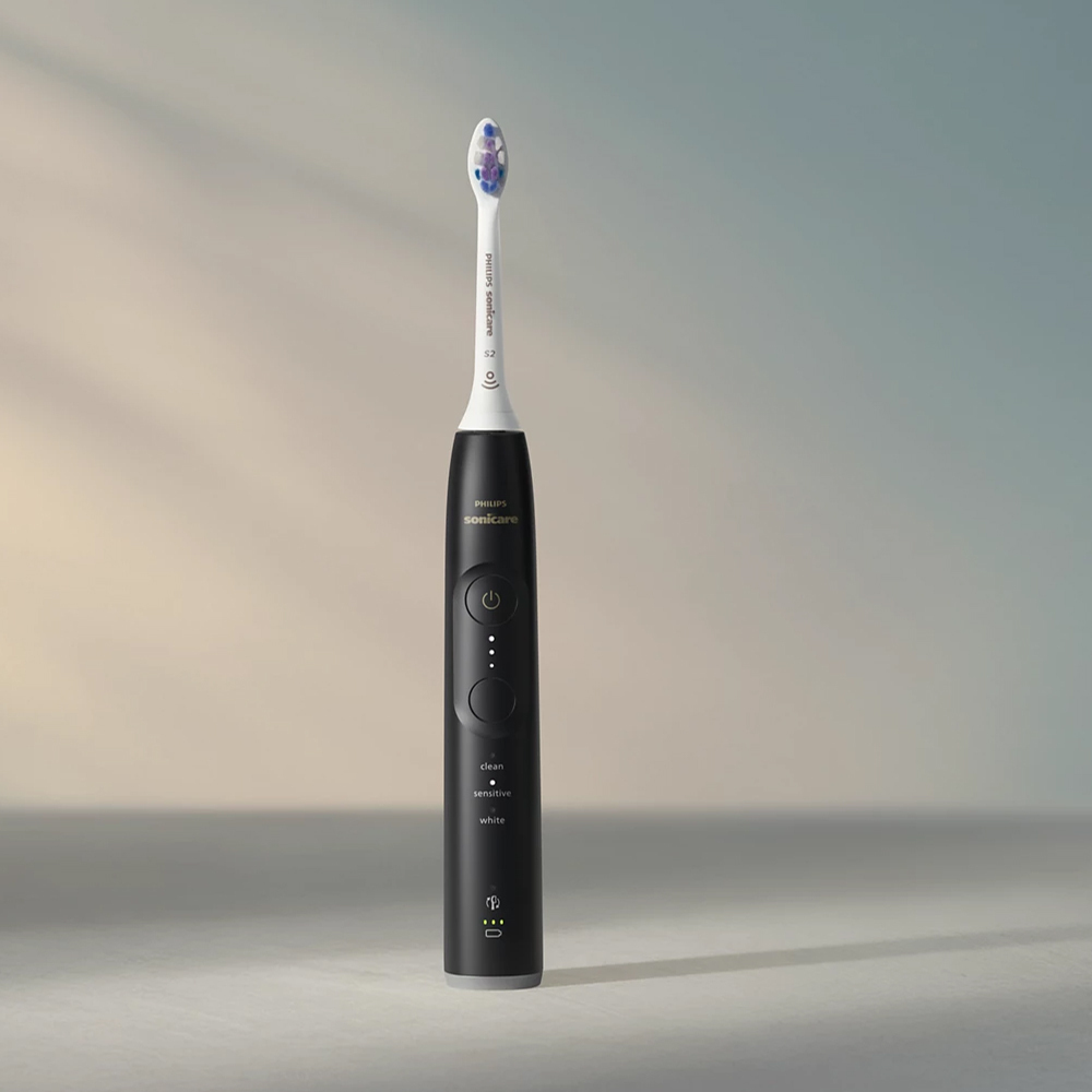 Η ηλεκτρική οδοντόβουρτσα Philips διαθέτει τεχνολογία Sonicare επόμενης γενιάς, που διοχετεύει παλμικό νερό ανάμεσα στα δόντια και κατά μήκος των ούλων για την απομάκρυνση της επίμονης πλάκας.