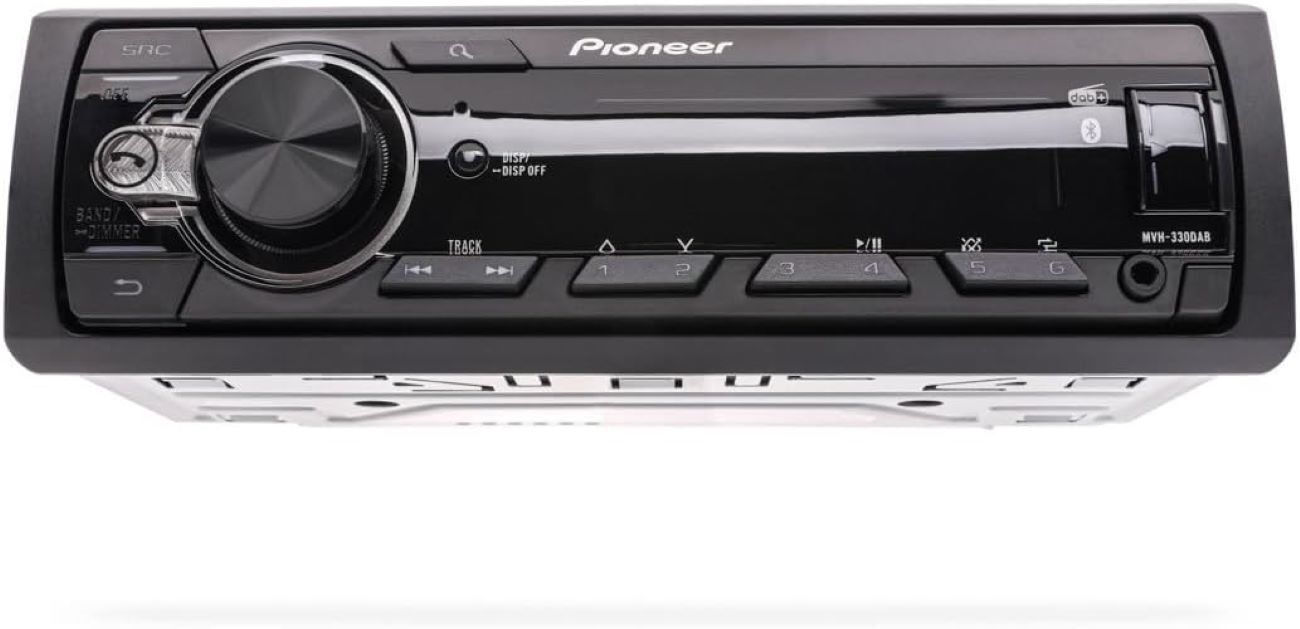 Το Pioneer MVH-330DAB διαθέτει κόκκινο φωτισμό πλήκτρων και λειτουργία Bluetooth για απάντηση κλήσεων και αναπαραγωγή μουσικών αρχείων MP3, WMA, WAV και FLAC από το κινητό σας.