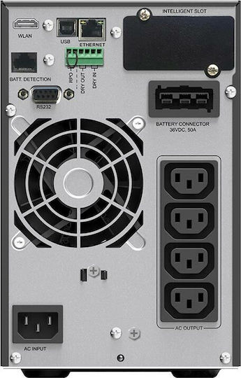 Το VFI 3000 ICT IoT UPS On-Line 3000VA 3000W με 8 IEC Πρίζες της Powerwalker είναι ένα Tower UPS. Διαθέτει 8 πρίζες τύπου IEC (όπως αυτή των τροφοδοτικών για υπολογιστές) καθώς και υποδοχή και έξοδο για καλώδιο ethernet προστατεύοντας τις συσκευές που συνδέονται με αυτό π.χ. router (εφόσον είναι συνδεδεμένη και η τροφοδοσία τους σε UPS ή πολύπριζο ασφαλείας). Η λειτουργία του είναι (VFI) On-Line/Double Conversion που προσφέρει συνεχώς ρεύμα από την μπαταρία του προστατεύοντας από αυξομειώσεις της τάσης αλλά και διακοπές ρεύματος. Προσφέρει ρεύμα καθαρού ημιτόνου που είναι κατάλληλο για ευαίσθητες συσκευές (πχ ιατρικά μηχανήματα) και προτιμάται για συσκευές με τροφοδοτικά που έχουν active PFC προστασία (πχ υπολογιστές).