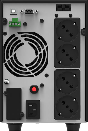 Το VFI-3000AT UPS On-Line 3000VA 2700W με 4 Schuko Πρίζες της Powerwalker είναι ένα Tower UPS. Διαθέτει 4 πρίζες τύπου Schuko καθώς και υποδοχή και έξοδο για καλώδιο ethernet και για καλώδιο τηλεφώνου, προστατεύοντας τις συσκευές που συνδέονται με αυτό π.χ. router ή τηλέφωνο (εφόσον είναι συνδεδεμένη και η τροφοδοσία τους σε UPS ή πολύπριζο ασφαλείας). Η λειτουργία του είναι (VFI) On-Line/Double Conversion που προσφέρει συνεχώς ρεύμα από την μπαταρία του προστατεύοντας από αυξομειώσεις της τάσης αλλά και διακοπές ρεύματος. Η μπαταρία του μπορεί να κρατήσει 11 λεπτά με μισό φορτίο ή 3 λεπτά με πλήρες φορτίο (όταν οι συσκευές που είναι συνδεδεμένες τραβάνε το μισό ή το μέγιστο ρεύμα που μπορεί να δώσει το UPS αντίστοιχα). Προσφέρει ρεύμα καθαρού ημιτόνου που είναι κατάλληλο για ευαίσθητες συσκευές (πχ ιατρικά μηχανήματα) και προτιμάται για συσκευές με τροφοδοτικά που έχουν active PFC προστασία (πχ υπολογιστές).