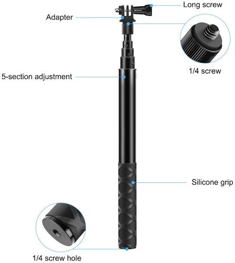 Μεταλλική ράβδος selfies PULUZ μήκους 110 εκ. κατάλληλη για Insta360 One RS / X2 / X3 / X4.
