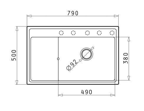 Νεροχύτης Pyramis Camea 79×50 1B1D R από γρανίτη, διαστάσεων 790 x 500 mm. Συνοδεύεται από βρύση κουζίνας Idea.