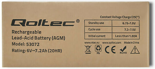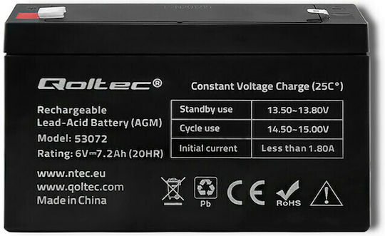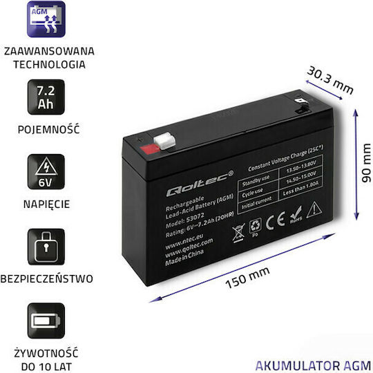 Qoltec Μπαταρία UPS με Χωρητικότητα 7.2Ah και Τάση 6V 53072