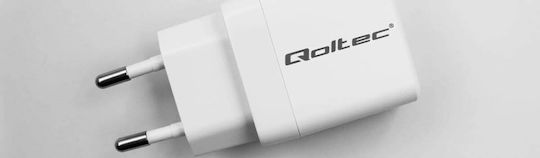 Qoltec Φορτιστής Χωρίς Καλώδιο GaN με Θύρα USB-A και 2 Θύρες USB-C 65W Power Delivery Λευκός (GaN 65W)
