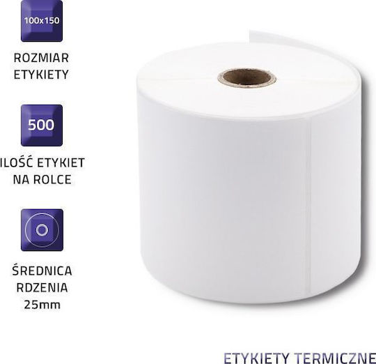 Qoltec 51890 500 Αυτοκόλλητες Ετικέτες σε Ρολό για Εκτυπωτή Ετικετών 100x150mm