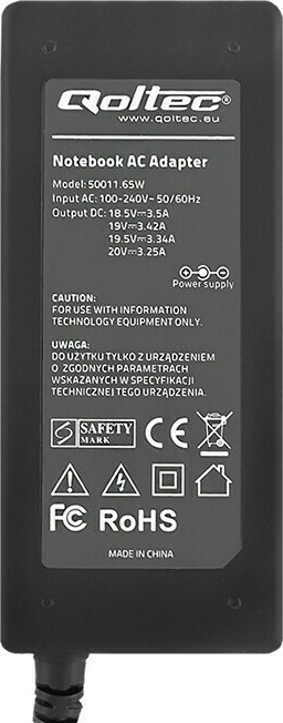 Εξοπλισμένο με προηγμένες τεχνολογίες (ασφάλεια), υπέρταση, υπερφόρτωση, βραχυκύκλωμα και υπερθέρμανση. Είναι ασφαλές στη χρήση και χαρακτηρίζεται από χαμηλή κατανάλωση ενέργειας και υψηλή απόδοση. Περιλαμβάνει καλώδιο τροφοδοσίας και velcro, όπου μπορείτε να προσαρμόσετε το μήκος του καλωδίου προσαρμογέα Qoltec και 8 μοντέλα plugins, έτσι ώστε να μπορεί να προσαρμοστεί σε πολλές συσκευές.