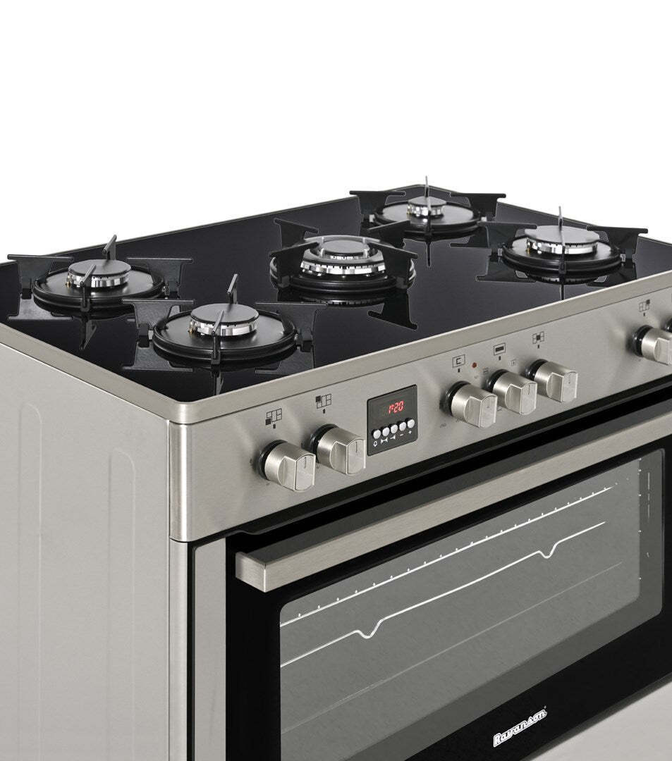 Ravanson Ελεύθερη με Εστίες Φυσικού Αερίου Inox KWGE-K90 Glass