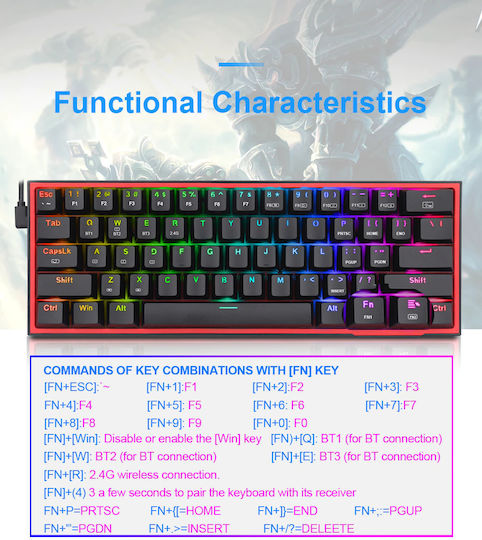 Gaming πληκτρολόγιο της εταιρείας Redragon με RGB φωτιζόμενα πλήκτρα σε γλώσσα αγγλικά US. Είναι μηχανικό, καθιστώντας το ιδανικό για gamers όπως επίσης και για όσους επιθυμούν γρήγορη πληκτρολόγηση. Έχει γρήγορη απόκριση και ακρίβεια, καθώς οι διακόπτες του ενεργοποιούνται στα μισά του πατήματος, εξοικονομώντας κινήσεις όταν πληκτρολογούμε.