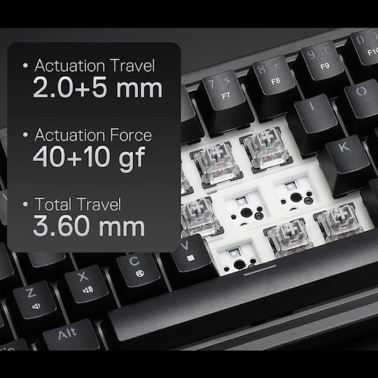 Η διάταξη K709 65% σε ενσύρματο mode καλύπτει τις ανάγκες του χρήστη για ξεχωριστά πλήκτρα βελών και επιπλέον λειτουργικά πλήκτρα. Το ultra-compact design με 68 κλειδιά ελευθερώνει πολύτιμο χώρο στο γραφείο για λιγότερη ακαταστασία.