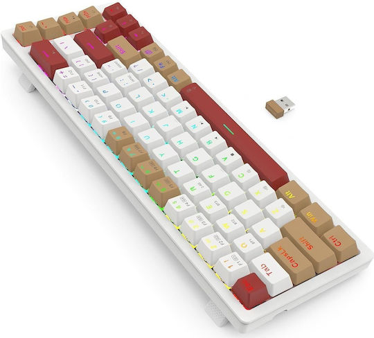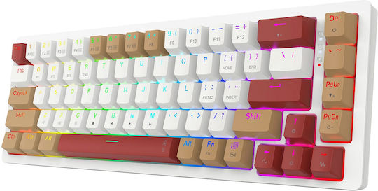 Redragon RAMMUS K677 PRO Ασύρματο Gaming Μηχανικό Πληκτρολόγιο 60% με Custom Brown διακόπτες και RGB φωτισμό (Αγγλικό US) Λευκό