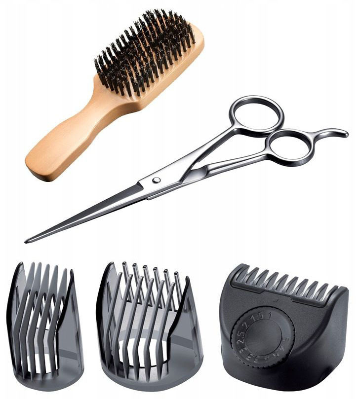 Αυτό το κιτ περιλαμβάνει όλα τα αξεσουάρ που χρειάζεστε για να δίνετε στυλ και να καλλωπίζετε το γένι σας με ευκολία: ένα ψαλίδι Premium από ανοξείδωτο ατσάλι θα σας βοηθήσει να κόψετε τη γενειάδα σας πριν τη διαμορφώσετε και την τακτοποιήσετε, ενώ η βούρτσα Bristle Brush Mixer σας επιτρέπει να βουρτσίζετε τη γενειάδα σας πριν και μετά το styling.