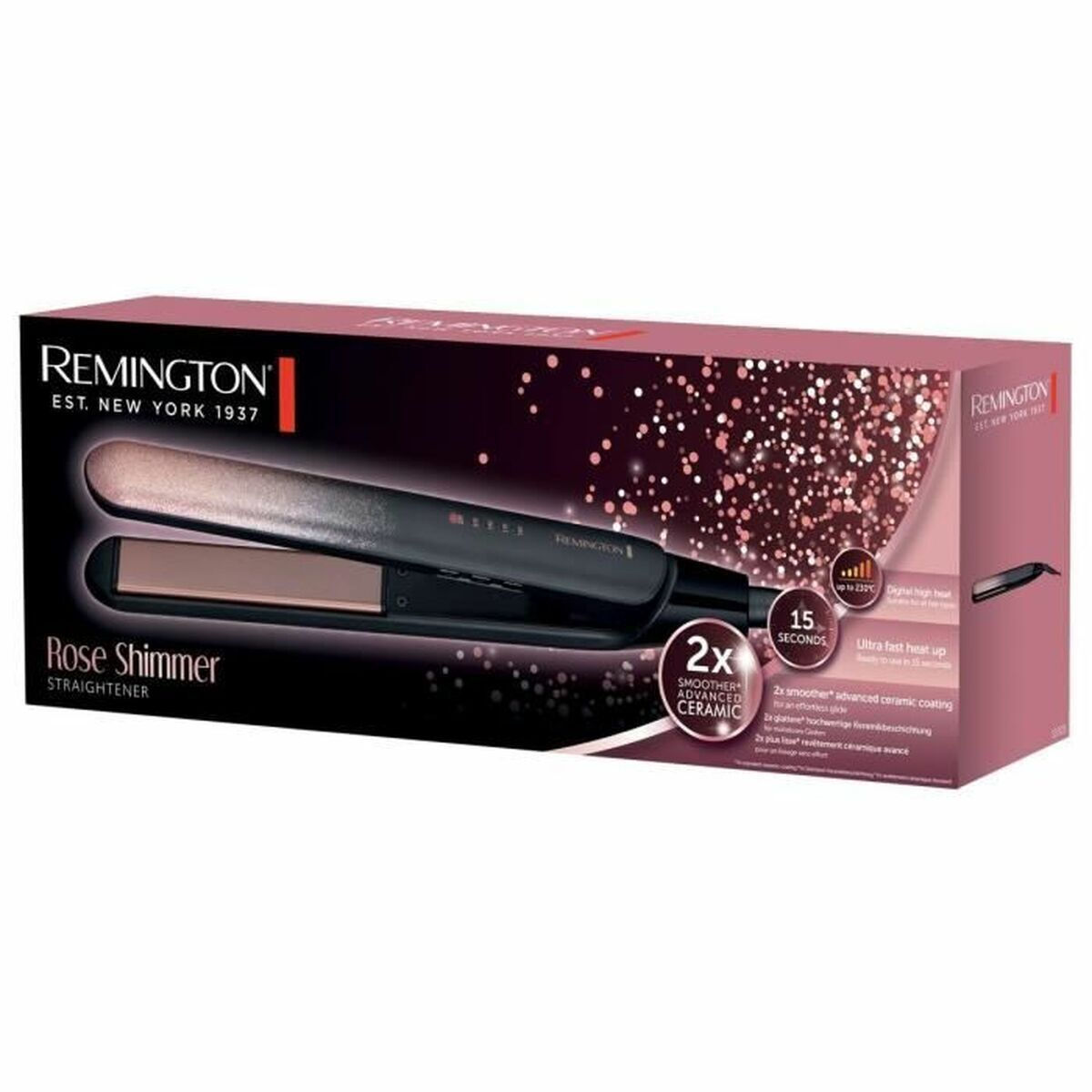 Ισιωτικό Remington Rose Shimmer S5305. Προσθέστε λάμψη στα μαλλιά σας με το ίσιωμα Rose Shimmer από τη Remington. Η συσκευή διαθέτει χαρακτηριστικό χρωματικό συνδυασμό κλασικού μαύρου με εντυπωσιακά λαμπερά στοιχεία σε απαλό ροζ.