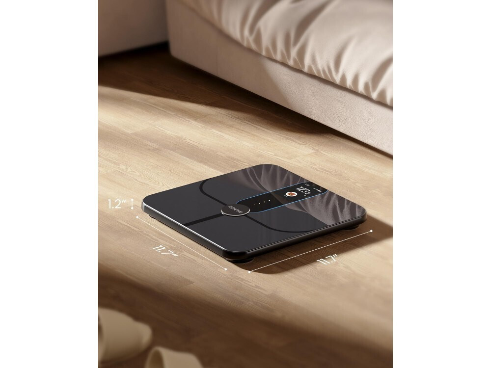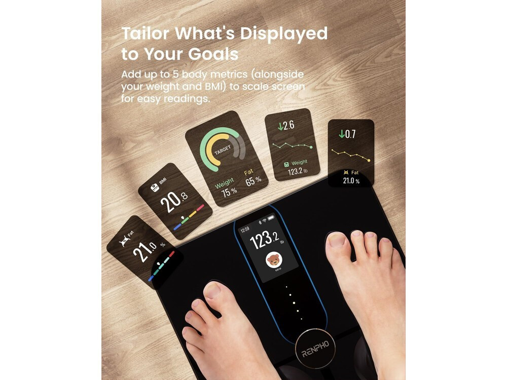 Η ψηφιακή ζυγαριά μπάνιου της Renpho, σε μαύρο χρώμα, προσφέρει ακριβείς μετρήσεις του σωματικού σου βάρους, ενώ ταυτόχρονα έχει τη δυνατότητα να υπολογίζει και το σωματικό λίπος. Με τον κομψό και μοντέρνο σχεδιασμό της, είναι ένα ιδανικό αξεσουάρ για κάθε μπάνιο.