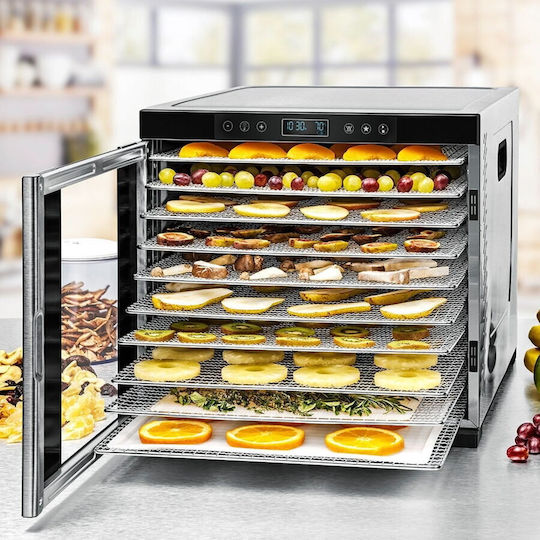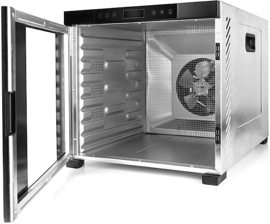 Ο αποξηραντήρας διαθέτει ανθεκτική κατασκευή από ανοξείδωτο ατσάλι με διπλά τοιχώματα και πρακτικές εσοχές στις πλευρές. Έχει οθόνη λειτουργίας LED και λειτουργεί με ευχάριστα πλήκτρα αφής. Η θερμοκρασία μπορεί να ρυθμιστεί σε διαφοροποιήσεις 5°C, από 35°C έως 75°C. Έχει χρονοδιακόπτη 99 ωρών με αυτόματη απενεργοποίηση, ατομικό προγραμματιζόμενο αγαπημένο πρόγραμμα και λειτουργία διατήρησης θερμοκρασίας.
