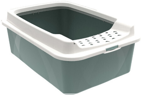 Ανοιχτή λεκάνη γάτας Rotho MyPet Bonnie Eco με επίπεδη σχεδίαση και μοντέρνο στυλ. Κατάλληλη για μεγαλύτερες φυλές γατών λόγω του μεγάλου ανοίγματος. Ο σχεδιασμός του πλαισίου μειώνει την εξάπλωση απορριμμάτων στον περιβάλλοντα χώρο. Το χαμηλό ύψος επιτρέπει εύκολο καθαρισμό, ενώ το αφαιρούμενο πλαίσιο μπορεί να πλυθεί ξεχωριστά.